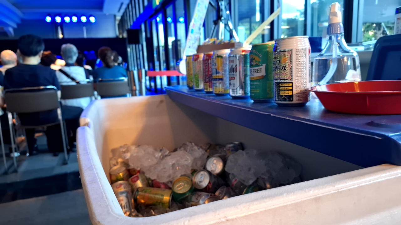 ノンアルコールの飲料とおつまみ、串揚げ、手作りクッキーを販売しました。