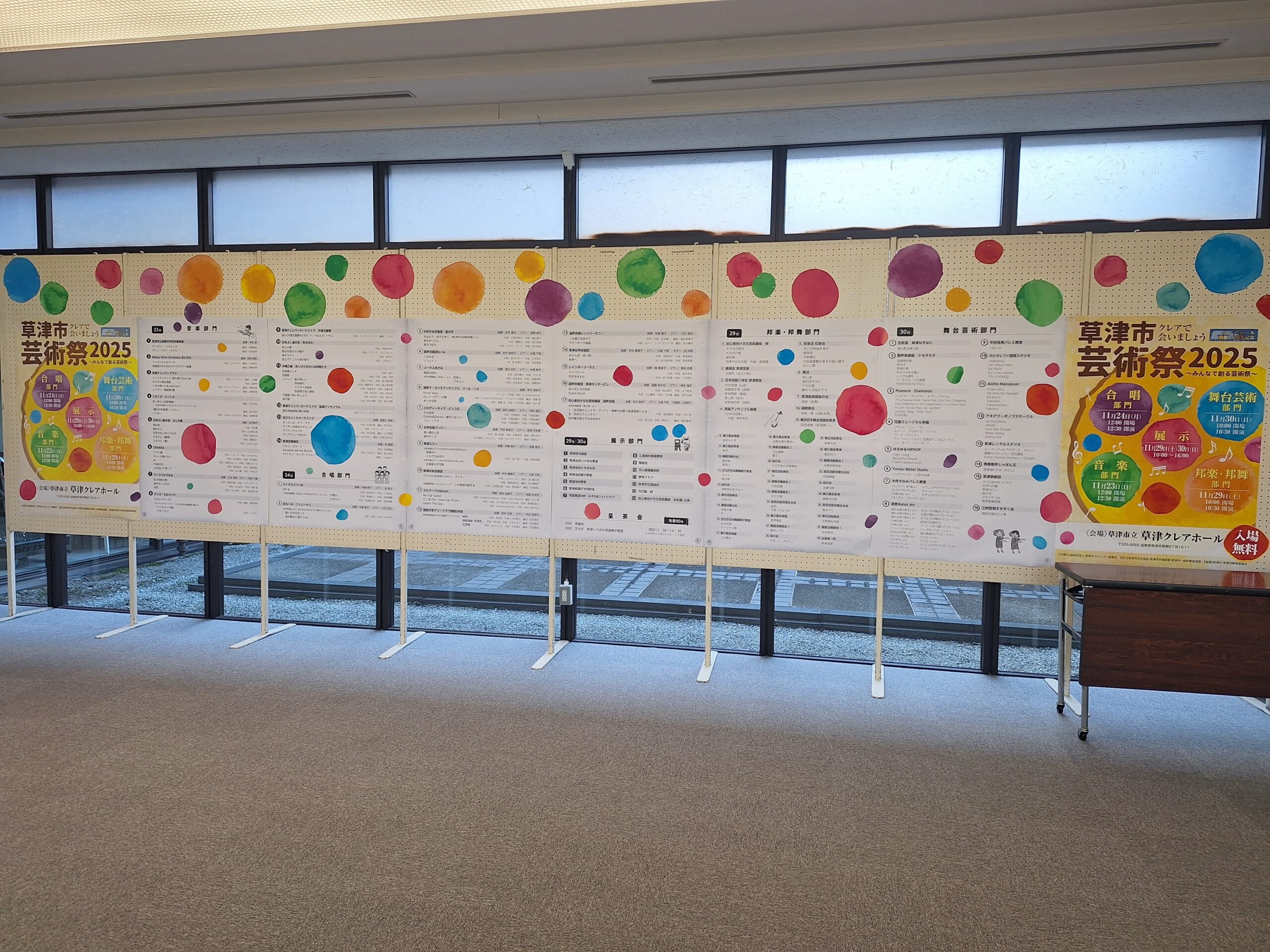 草津市芸術祭2025 がいよいよ開幕しました! 草津アートセンター 2025.11.23 草津アートセンター草津クレアホールスタッフブログ/クレア 参加団体説明会から1カ月、いよいよ本日より草津市芸術祭2025が開幕しました。 今年は約80もの団体が参加。 明日は合唱部門です。 皆さま、お誘いあわせの上ぜひお越しください!